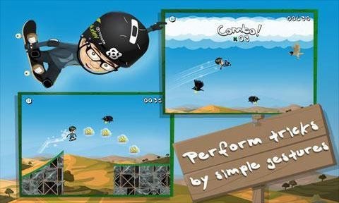 该游戏是滑板跑酷游戏,通过一个个高台和弯道抑或是一条长直的平台,体验一次极速快感,游戏的操作也比较简单,手指滑动屏幕带动人物滑行~你可以随意控制鲍勃同学做出你想要的创意动作哦~