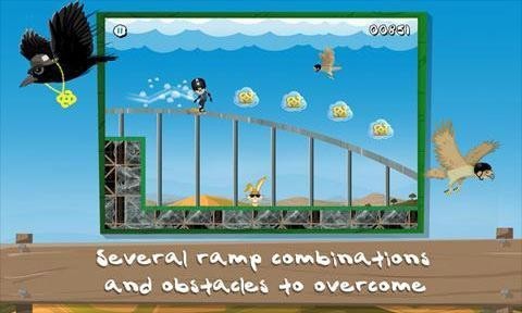 鲍勃的梦境 Bob Burnquist‘s Dreamland游戏的场景非常的丰富多彩,因为是在梦境之中,家需要用长按和点触等操作控制鲍勃跳起或者下降来躲避路途中的障碍物,一个超酷的跑酷游戏